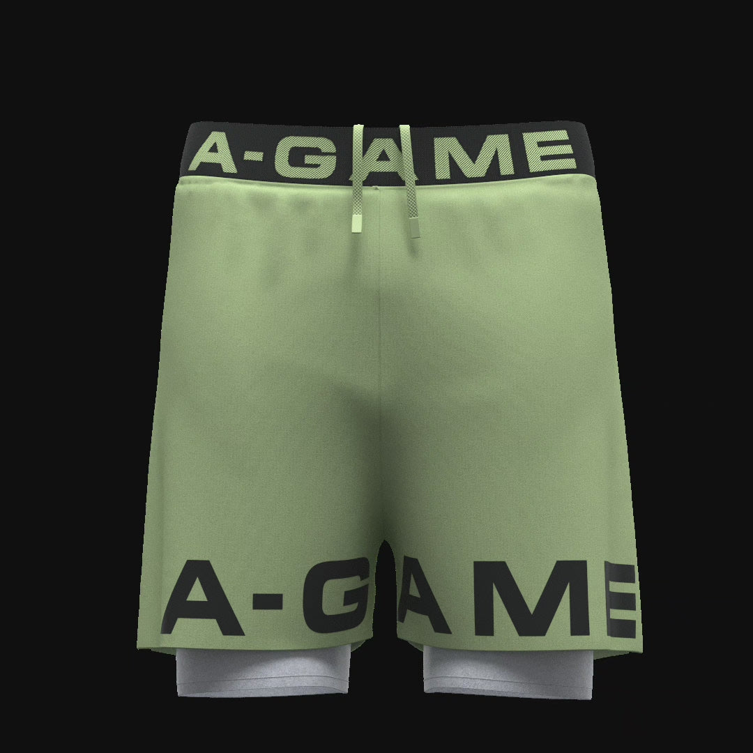 MENS A-GAME 2-IN-1 TRAINING SHORTS in lime and black.