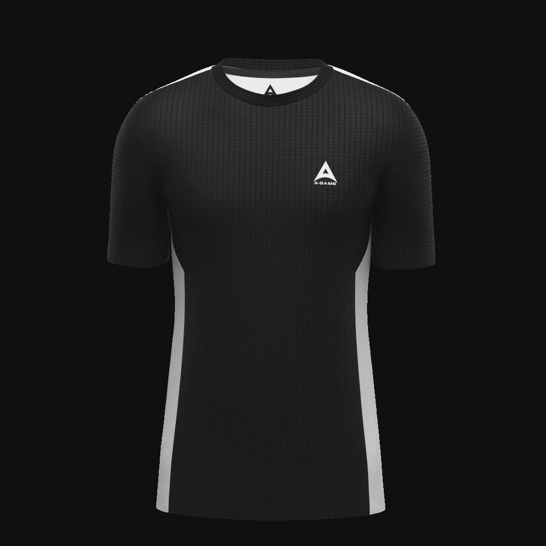 MENS A-GAME PANELLED TRAINING TSHIRT in pure black and light grey.