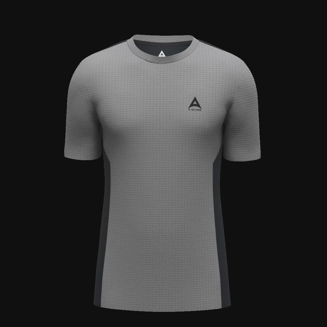 MENS A-GAME PANELLED TRAINING TSHIRT in charcoal and pure black.