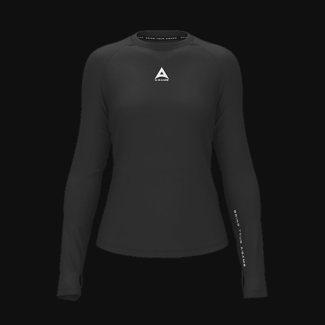 WOMENS A-GAME FITTED LONG SLEEVE TRAINING TOP - BLACK