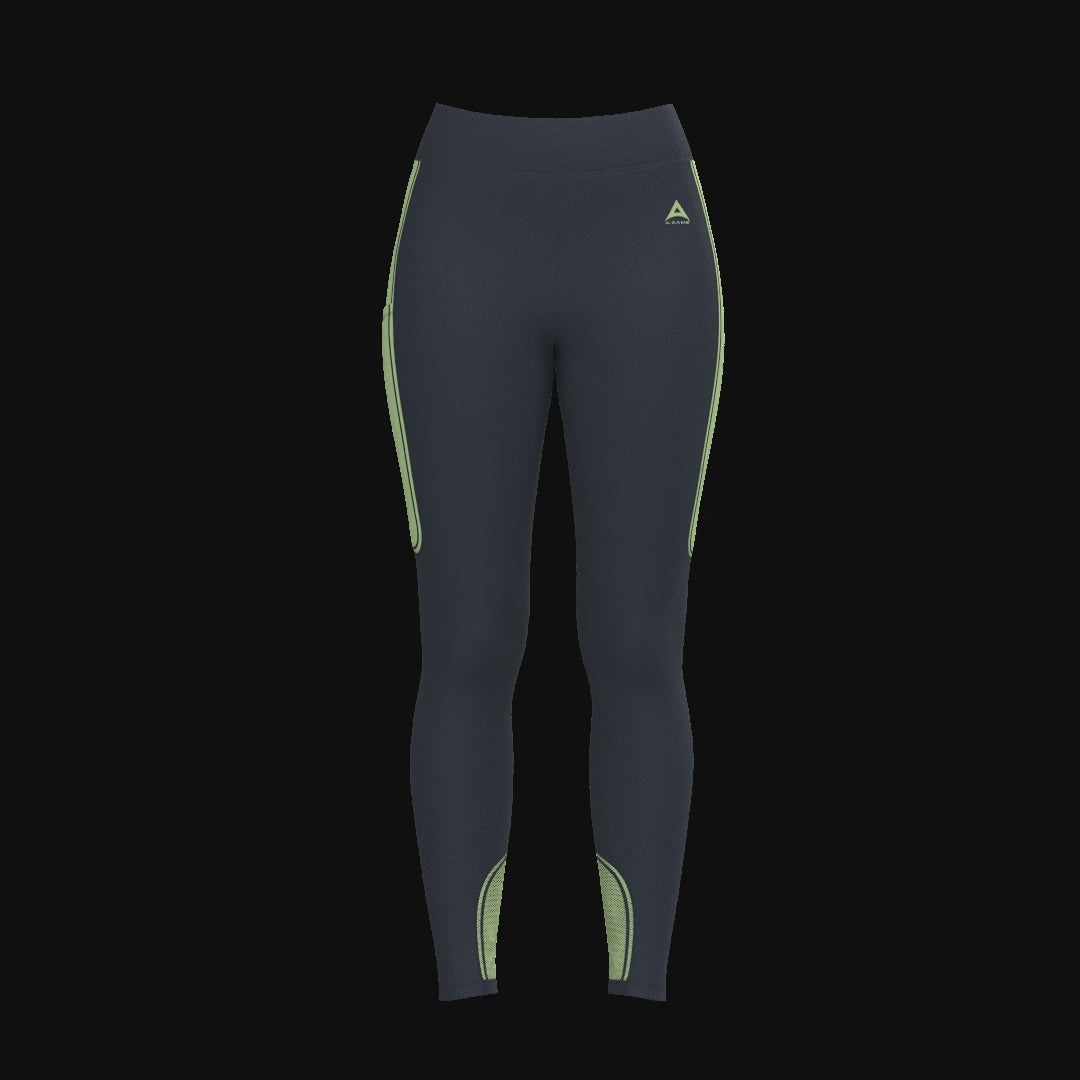 WOMENS A-GAME REFLECTIVE RUNNING LEGGINGS - NAVY/LIME