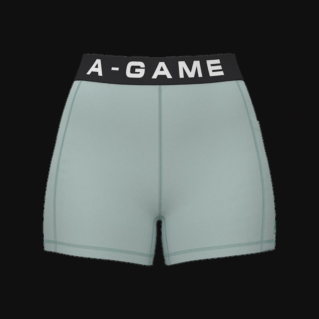 WOMENS A-GAME LOGO TRAINING CROPPED SHORTS - SAGE GREEN