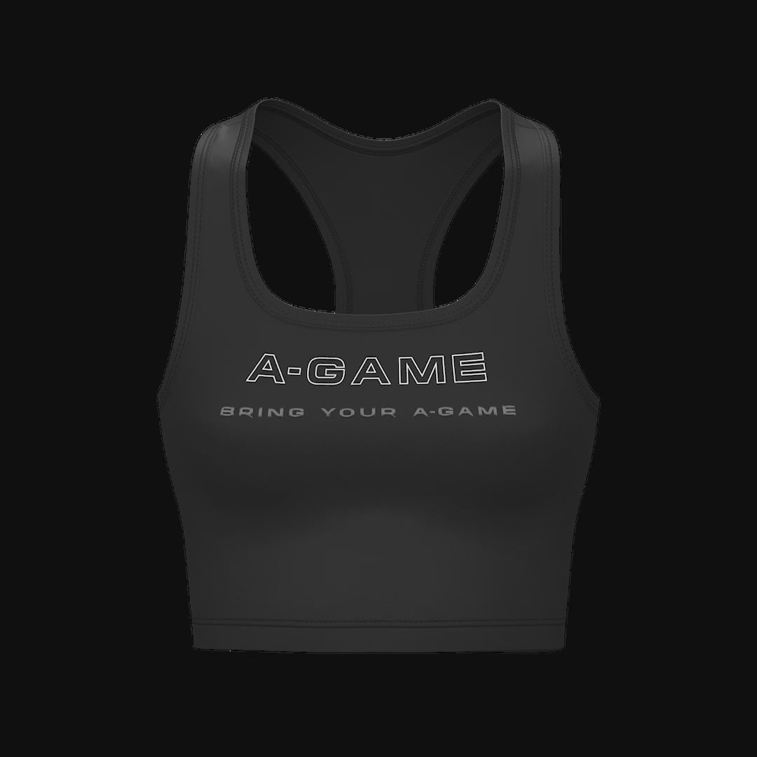 WOMENS A-GAME SQUARE NECK SPORTS BRA - BLACK